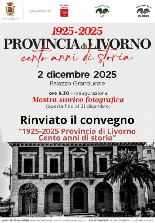 Per tale motivo il convegno “1925-2025 Provincia di Livorno Cento anni di storia” è rinviato ad altra data.