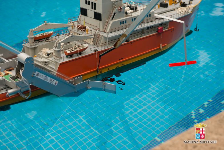 Marina Militare e Dipartimento della Protezione civile, spinti dal comune interesse per la tutela dell’ambiente marino e la salvaguardia della popolazione, hanno testato il sistema lo scorso 16 dicembre presso il Circolo Ufficiali della Marina Militare a Roma, utilizzando un modello realizzato dal Dipartimento di Scienze della Terra dell’Università di Firenze in scala 1:50 e montato su un modello di nave rimorchiatore della stessa scala, solitamente usato in assistenza alle piattaforme petrolifere. In quella occasione è stato mostrato come il sistema – piuttosto semplice dal punto di vista tecnologico e realizzabile con costi contenuti – sia molto versatile, tanto da poter essere utilizzato da diversi modelli di nave.