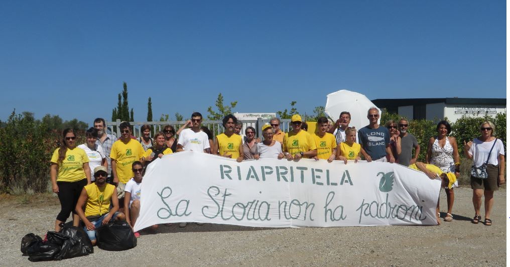Con ancora negli occhi e nella mente lo splendido spettacolo di “Cavalloni”, la notte di poesia e grandi teli dipinti al Cotone a Marciana Marina, stamattina i volontari di Legambiente si sono ritrovati, insieme a decine di cittadini portoferraiesi ed elbani, al desolato parcheggio della Villa Romana delle Grotte per un flash mob dal significativo slogan “RIAPRITELA – La Storia non ha padroni”.