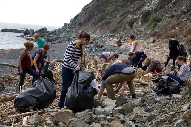 Da molti anni l’afflusso di rifiuti che si spiaggiano con le mareggiate dell’inverno non vengono gestiti da nessuna autorità o amministrazione, ma raccolti da pochi Elbani entusiasti (saluti e grazie a Giovanni!!) ed accumulati in un angolo protetto della spiaggia stessa. Ogni anno, in primavera, gli scienziati