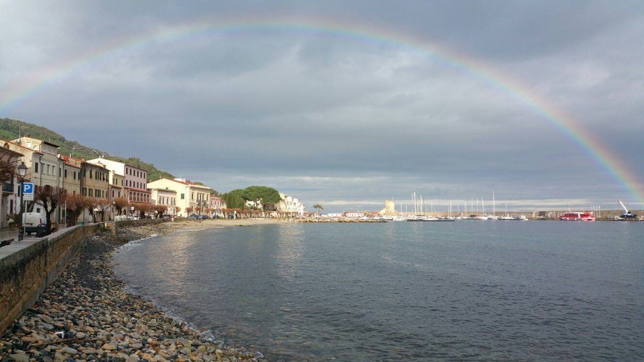 L'arcobaleno di questa mattina che incornicia il porto di Marciana Marina