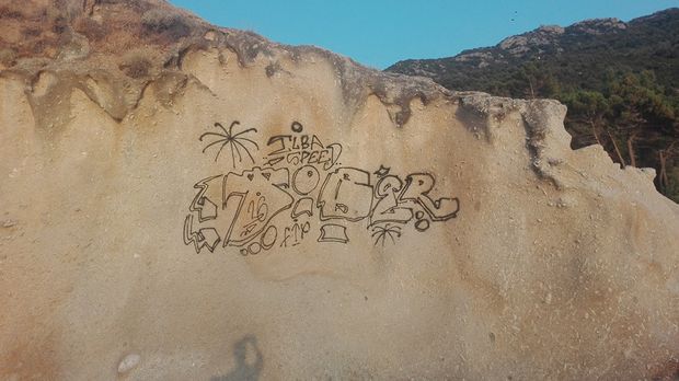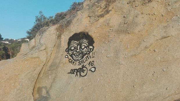 Dobbiamo al Signor Matteo Di Bennardo la documentazione (con foto che sono state pubblicate su un profilo face book) delle “imprese” grafiche di un purtroppo ignoto demente, che (probabilmente non da solo) ha ben pensato di istoriare le scogliere di Sant’Andrea con i suoi graffiti,.