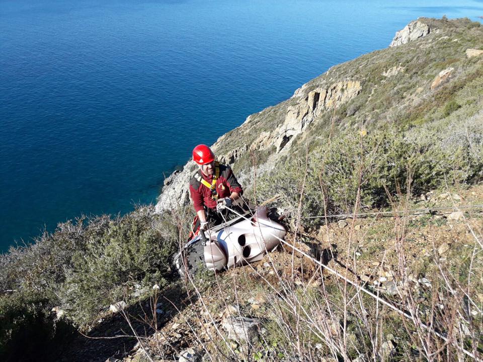 Un ciclomotore arrugginito anni ’60 è diventato il simbolo della giornata di pulizia che si è svolta domenica scorsa 19 febbraio nella costa marcianese tra Le Tombe e Marciana e in un tratto del Comune di Campo nell’Elba. Il terzo appuntamento di 10.000 mani per l’Elba si è svolto sul versante occidentale dell’isola e ha visto una partecipazione popolare molto attiva e importante. Hanno lavorato fianco a fianco cittadini, albergatori locali, volontari delle associazioni, vigili del fuoco e rappresentanti delle istituzioni: il sindaco Anna Bulgaresi, Zanichelli del Parco, Solari di ESA, Beppe Tanelli, ecc. Il vice prefetto Daveti ha seguito personalmente le operazioni per coordinare le esigenze dell’ultima ora. Sotto i ponti, lungo le scarpate coperte dalla macchia erano annidati enormi accumuli di vecchi rifiuti. A viva forza di braccia e con le corde sono stati issati a bordo strada, radunandoli in cataste dove poteva poi essere più facile la raccolta.