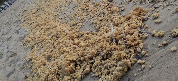 Si ipotizza che il materiale spiaggiato sia una cera di natura idrocarburica e che non presenti pericolosità né ambientale né sanitaria.
