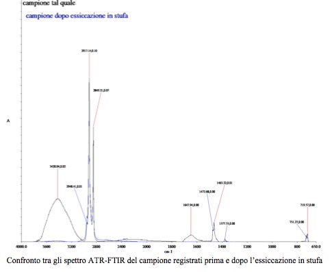 Una ulteriore conferma della natura del materiale spiaggiato è stata ottenuta grazie all’analisi in ATR-FTIR eseguita dall'Università di Pisa Dipartimento di Chimica e Chimica Industriale.