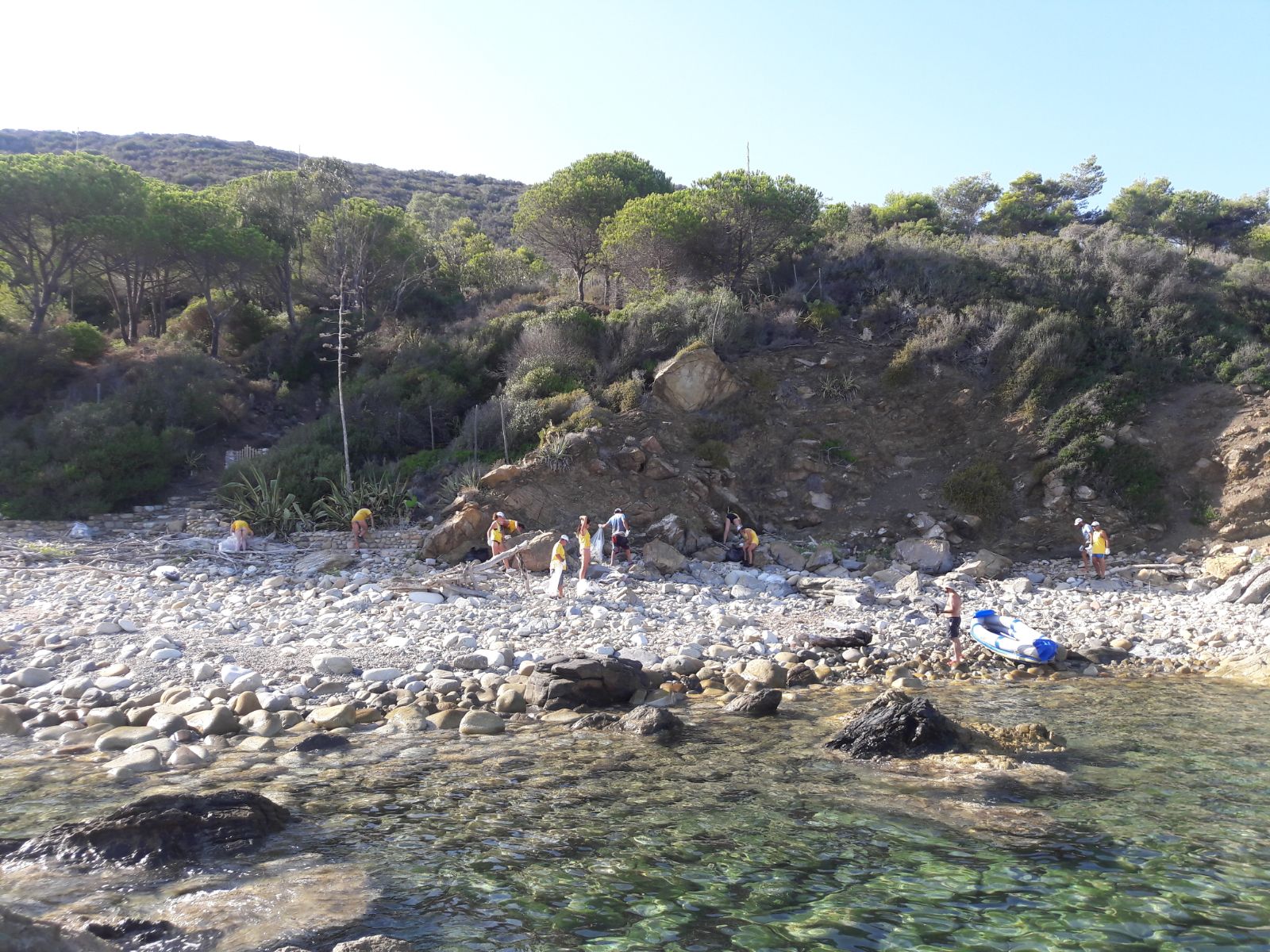 Una volontaria sottolinea: «Abbiamo costeggiato molte splendide spiagge e insenature del promontorio di Calamita, ma ci siamo fermati di fronte alla costa del Cannello, sotto il Monte Calamita, dove siamo sbarcati con il tender per fare i rilievi del marine litter sul transetto di 25 metri lineari canonici. Sembrava una spiaggia pulita, ma in fondo, sotto il monte, le mareggiate hanno incastrato tra le rocce e gli arbusti le solite cassette di polistirolo, bottiglie di plastica, ciabatte e scarpe, cicche, scatolette varie».