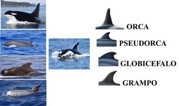 Quindi: analizziamo quali Cetacei possano risultare simili a un'Orca. E teniamo conto che il Grampo, solitamente, è grigio chiaro quando non decisamente tendente al bianco.