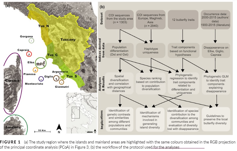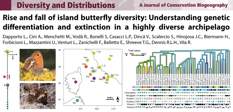 Da molto tempo prima dei celebri studi di Darwin e Wallace, biologi e naturalisti si pongono alcune domande: «Come evolve la diversità di un’isola? Quali fattori rendono differenti le popolazioni insulari da quelle delle terre circostanti, a seguito di una particolare, e spesso unica, storia evolutiva, e talvolta spingendole all’estinzione?». Lo studio “Rise and fall of island butterfly diversity: Understanding genetic differentiation and extinction in a highly diverse archipelago”, pubblicato sul numero di ottobre di Diversity and Distributions cerca di fornire alcune risposte attraverso le farfalle dell’Arcipelago Toscano.