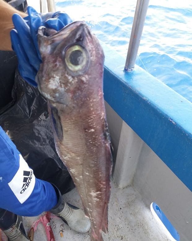 Cattura inusuale nelle acque dell'Arcipelago: operando con palamiti di profondità a ovest dell'Africhella, l'equipaggio del peschereccio campese "Azzurra" si è imbattuto in un grosso pesce scuro che, nonostante la grande esperienza dei pescatori, sembrava diverso da tutti quelli visti finora.