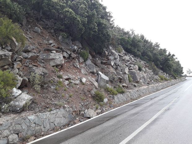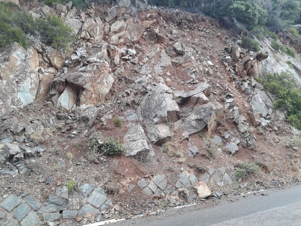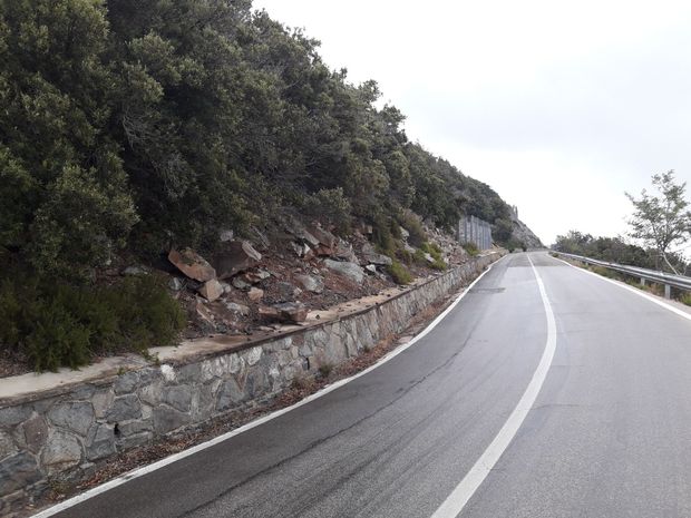 La strada sale, iniziano i Macei dell’ Infernaccio. Tecnicamente sono depositi di versante: un insieme scompaginato di massi rocciosi che ricoprono i ripidi versanti fino al mare, tagliati dalla strada. Si sono formati attorno a 20 mila anni fa, nei momenti più freddi dell’ ultima glaciazione. I ghiacci alpini arrivavano fino alla pianura Padana. Piccoli ghiacciai erano sulle Apuane, e forse, e comunque così ci piace pensare , la Galera del Capanne era un piccolo teatro di nevi perenni. Comunità di cacciatori e raccoglitori percorrevano il territorio elbano unito a Pianosa ed al continente a formare una estesa penisola protesa verso la Corsica, Capraia e Montecristo. Orsi, cervi e cinghiali erano le ambite selvaggine. Il gelo spaccava le rocce e grossi blocchi di serpentino precipitavano dalle falde del Capanne accumulandosi lungo i versanti in un precario e instabile equilibrio, giungendo fino al mare in quel grosso blocco dal quale, come vuole la leggenda, Napoleone guardava la sua terra natale: è questa la Sedia di Napoleone. Una ventina di anni fa, il Parco Nazionale promosse e in parte finanziò la messa in opera di reti paramasso nei tratti più critici dei Macei dell’ Infernaccio. Quelle opere ancora oggi esplicano perfettamente il loro ruolo, ma nel tempo altre criticità di rischio frana si sono aggiunte, così’ da imporrre con urgenza idonei interventi di manutenzione dei muretti e di contenimento dei massi erratici. Magari evitando interventi di messa in sicurezza particolarmente invasivi, quale è il caso del muro in cemento e della rete paramassi edificata a Fetovaia a bordo strada. Non guasterebbe che almeno il muro di cemento venisse rivestito di granito. Muri a giorno in cemento non si vedono più neanche in autostrada, figuriamoci, come è il caso, in una strada entro un Parco Nazionale.