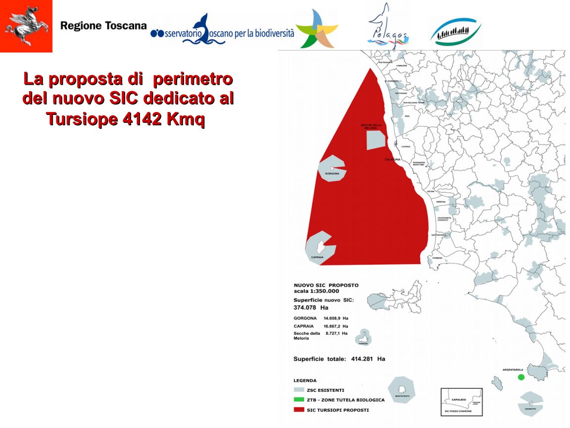Il SIC a mare proposto sarà il più grande sito nel Mediterraneo per la protezione del tursiope con una superficie di oltre 4142 Kmq, in sovrapposizione alla piu vasta area del Santuario Pelagos, e riguarda il triangolo che si estende tra i comuni di Pietrasanta e Piombino comprendendo anche una superficie marina totale di 402 kmq intorno alle isole di Gorgona, Capraia e le Secche della Meloria già individuate come Zona Speciale di Conservazione (ZSC).