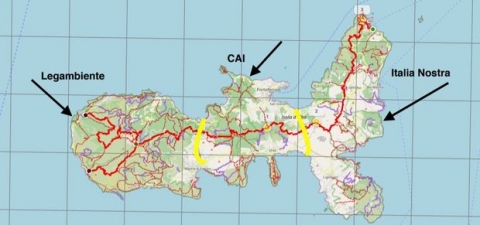 DIVISIONE DEL TERRITORIO: Al fine di evitare inutili sovrapposizioni e sopralluoghi, in linea di massima, l’isola è stata divisa in 3 settori, il cui monitoraggio è di competenza di: Legambiente per la zona Occidentale ,considerando l’aeroporto della PIla come limite , mentre nella zona centrale fino alla strada Povinciale di Campo ai Peri di competenza del CAI e la restante area Orientale per Italia Nostra. Questo non toglie che altre associazioni, come stanno facendo la Protezione Civile nel Comune di Rio, le Associazioni Venatorie a Portoferraio o i volontari a Poggio, possano intervenire in accordo con i Comuni ed Esa e/o “adottare tratti di GTE e strade limitrofe (in particolare quelle costiere, prese molto di mira dai vandali dei rifiuti) per segnalare discariche. Le segnalazioni occasionali o isolate verranno comunque prese in considerazione e inserite nella mappa.