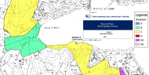 Il nuovo molo, considerando il tratto della fascia costiera dove si appoggerà, ricade nella Zona C “di protezione” del Parco Nazionale dell’Arcipelago Toscano, definite come “ambiti caratterizzati dalla presenza di valori naturalistici ed ambientali inscindibilmente connessi con particolari forme colturali, di produzione agricola od a particolari modelli insediativi o da forme significative di presidio ambientale”, il progetto pare in netto contrasto con l’articolo 19 delle Norme tecniche di attuazione del Piano del Parco che dice che “Gli usi e le attività compatibili sono quelli coerenti con le finalità di manutenzione, di ripristino e di riqualificazione delle attività agricole e forestali, degli elementi e dei segni fondamentali del paesaggio naturale ed agrario, di conservazione della biodiversità e delle componenti naturali in esse presenti. Sono ammessi, oltre agli usi e alle attività di carattere naturalistico (N), gli usi e le attività agrosilvopastorali (A) e quelli relativi alla funzione insediativa (UA) presente. Gli interventi e le azioni consentiti e necessari sono quelli di manutenzione e di riqualificazione (MA, RQ) del territorio agricolo e del patrimonio edilizio, di restituzione delle aree degradate (RE) e di conservazione (CO) delle risorse naturali. Compatibilmente con le finalità ed i limiti suddetti”. E’ chiarissimo che un porto non ha niente a che vedere con tutto questo e che richiamare il paragrafo dello stesso articolo dove si dice che “Sono ammessi gli interventi e le azioni volti a migliorare la fruibilità turistica, ricreativa, sportiva, didattica e culturale che richiedano, al più, modeste modificazioni del suolo ed opere edilizie non eccedenti quanto previsto dai commi successivi del presente articolo” rappresenta un semplice artificio, visto che le norme si riferiscono ad interventi di valorizzazione agricolo/ambientale e non certo portuale e il dimostrato impatto su flora, fauna ed ecosistema dell’intervento proposto. Infatti lo stesso articolo precisa che sono in particolare vietati gli interventi e le azioni di cui all’art.18.2, ai punti a,b,d,e,f,g,h,i,j,k, salvo che riguardino interventi a destinazione esclusivamente agricola o forestale, nell’ambito di progetti e programmi previsti dall’Ente Parco per la valorizzazione delle attività agro-silvo-pastorali, con eventuali limitati interventi di adeguamento delle infrastrutture esistenti comprovati da effettive esigenze e che comunque non contrastino con le altre disposizioni delle presenti Norme. Sono altresì consentiti tutti gli interventi di manutenzione delle infrastrutture di pubblica utilità quali le infrastrutture antincendio (..). Anche l’ articolo 18.2 interventi ed azioni vietate, tra le deroghe non comprende certo la realizzazione di un’area portuale in zona C del Parco e con un forte impatto su una delle aree naturalisticamente più importanti dell’Area protetta.