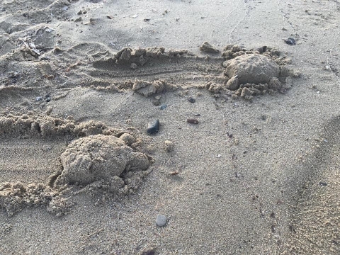 In attesa che qualche altra mamma tartaruga venga a regalarci qualche altra nidiata, un mirabile scherzo di Fabio Crivellaro, che con formine e sabbia ha improvvisato sulla spiaggia di Lacona questi "trabocchetto" fotografico in cui, alla prima occhiata, siamo cascati in parecchi.