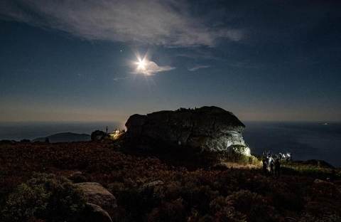 Il panorama disteso sotto gli occhi degli escursionisti si è aperto sulla costa a sud dell’Isola d’Elba, sulla Corsica punteggiata in lontananza di luci, e sulle isole dell’Arcipelago, Pianosa e seminascosta dai vapori del mare l’Isola di Montecristo.