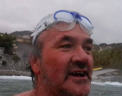 Pierluigi Costa dei Messaggeri del Mare come è noto, ogni giorno fa il suo bagno in mare con qualunque stagione, sempre senza muta, e infatti il 1° novembre, nonostante il tempo avverso per vento, pioggia e cavalloni, si è immerso davanti a Chiessi dove abita.