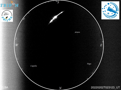 L'immagine è la ripresa della camera Prisma elbana al Forte Inglese, che monitora continuamente cosa attraversa i nostri cieli. (Per migliorare la lettura dell'immagine sono indicate le stelle più luminose).