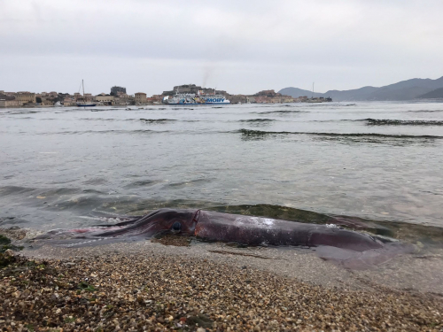 Dopo quello (di dimensioni anche maggiori) trovato a Pomonte nei giorni scorsi un altro calamaro gigante è stato rinvenuto spiaggiato sul litorale portoferraiese di San Giovanni.