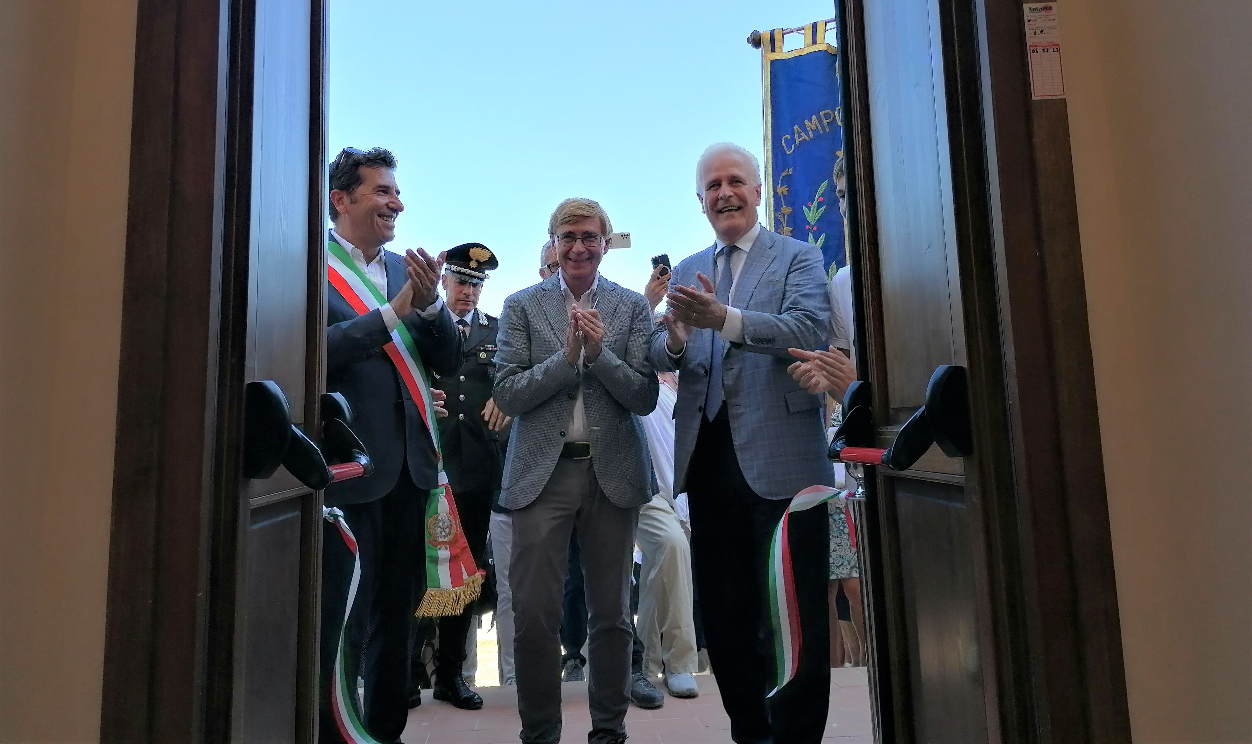 Una cerimonia in piena regola con il taglio del nastro a tre, Presidente della Regione Toscana, Presidente del Parco e Sindaco di Campo nell’Elba di fronte a un pubblico di circa 80 ospiti con rappresentanze delle Forze dell’Ordine e delle istituzioni e associazioni della comunità locale, del Consiglio Direttivo del Parco, dei dipendenti dell’Ente e delle Guide Parco. Presenti anche i familiari discendenti degli ultimi due agronomi, Giacomo Cusmano e Agostino Petri che hanno abitato l’edificio e la studiosa Dr.ssa Ilaria Monti, curatrice della ricostruzione storica dell’edifico, che ha raccontato ai presenti la storia dell’edificio e il suo significato.
