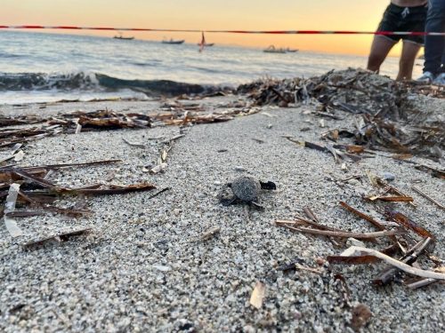 Le tartarughine marine che continuano a uscire dal nido di Sant’Andrea sembrano preferire la notte fonda o il pieno giorno. Stanotte,alle 2,32 una tartarughina solitaria ha cominciato il breve ma faticoso cammino verso il mare che ha raggiunto mezz’ora dopo e dove purtroppo è stata immediatamente attratta verso gli scogli del Contoncello da un faro abbagliante e dalle luci dei lampioni rimaste accese. Se non fossero presenti durante tutta la notte i volontari di Legambiente, che poi recuperano le tartarughine smarrite alle prime luci dell’alba, nelle prime due giornate di uscita delle tartarughe dal nido si conterebbero probabilmente diverse tartarughine divorate dai gabbiani e, in questo caso non per una causa naturale ma per un disturbo antropico che potrebbe essere evitato con un minimo di buona volontà e buon senso.