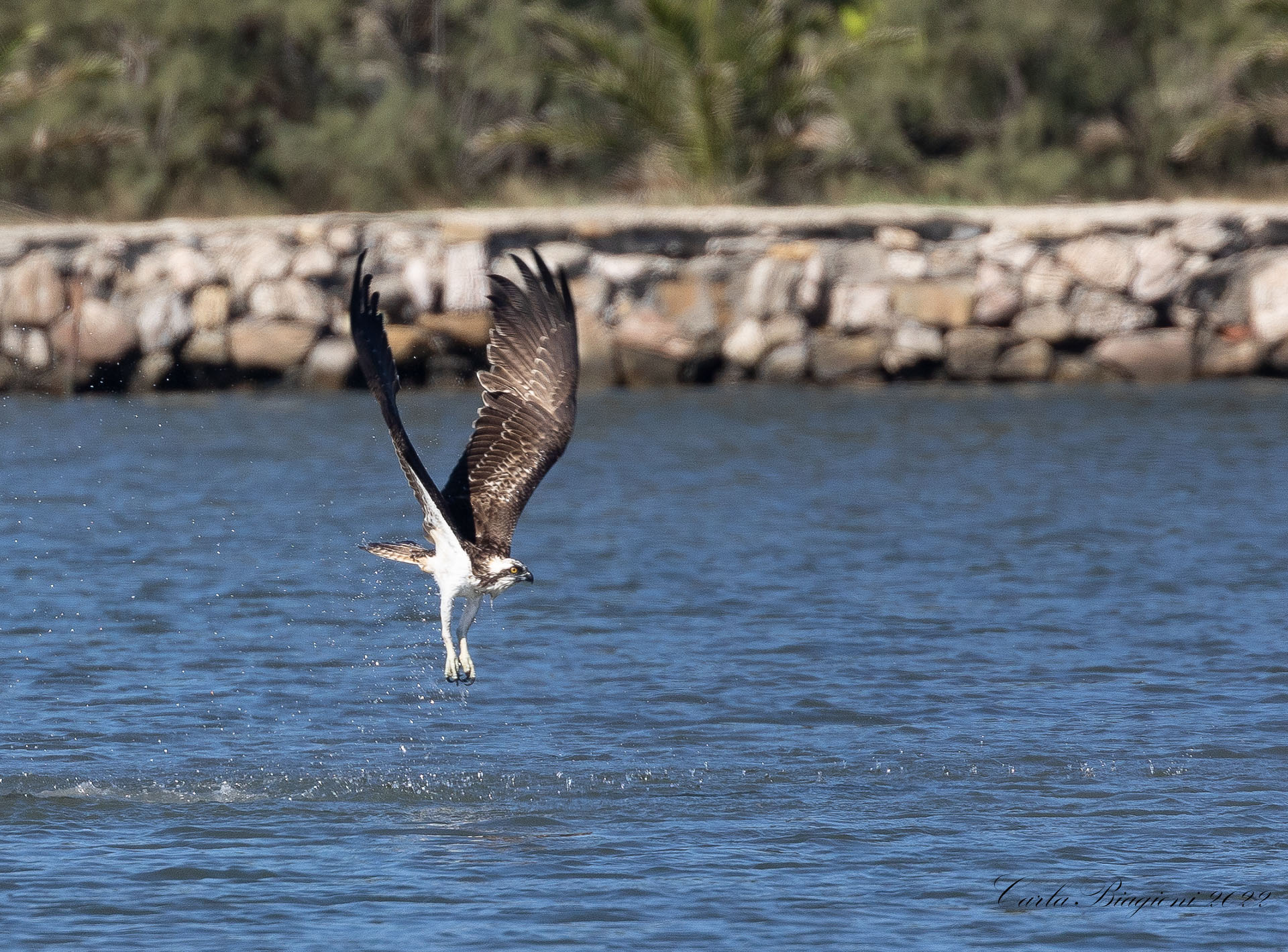 La settimana passata ero all'isola e, nella speranza di fotografare il martin pescatore sulle tamerici che circondano la laguna mi sono recata a San Giovanni. Mentre seguivo inutilmente le evoluzioni del piccolo velocissimo uccellino ho visto arrivare, con mia grande sorpresa il falco pescatore che ha planato sulla laguna ispezionando il fondo.