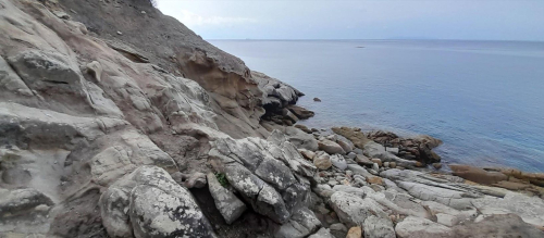 In fondo a una strada di vigne abbandonate, conquistate da lecci e da scope arsi da un’estate che non vuole finire, c’è ancora una traccia umida di un fosso dove è scomparsa una grande pianta di Osmunda regalis, un’antica felce che mangiavano i dinosauri, poi una valanga di massi rotolati e di scogli cedevoli modellati dai morsi pazienti del mare e si apre una piccola insenatura scabrosa. Di fronte, in un mare bianco e quasi immobile che risuona tra i sassi, le Formiche della Zanca e una boa rossa e bianca illuminata da un raggio di sole. Più lontana, quasi azzurra, Capraia con di fronte un traghetto che viene da chissà dove e va chissà dove. Più in là, dietro la punta di pietra marrone squagliata, spunta come un’ombra da nuvole scure la Corsica.