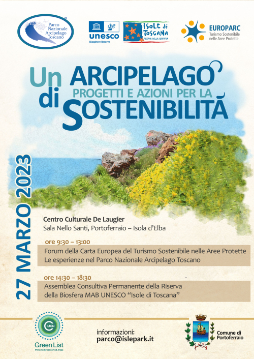Nell’ambito delle attività di monitoraggio del Piano d’Azione della Carta Europea del Turismo Sostenibile (CETS) nelle Aree Protette applicata al Parco Nazionale Arcipelago Toscano, nonché della gestione della Riserva della Biosfera MAB UNESCO “Isole di Toscana”, diversi stakeholder del territorio si riuniranno nella giornata di lunedì 27 marzo p.v. presso la Sala “Nello Santi” del Centro Congressuale De Laugier, a Portoferraio, allo scopo di discutere lo stato di attuazione degli impegni assunti per il mantenimento e l’implementazione delle due prestigiose certificazioni internazionali. Sarà anche l’occasione in cui il Parco Nazionale presenterà lo stato di avanzamento di alcuni progetti, funzionali agli obiettivi inseriti nei piani gestionali.