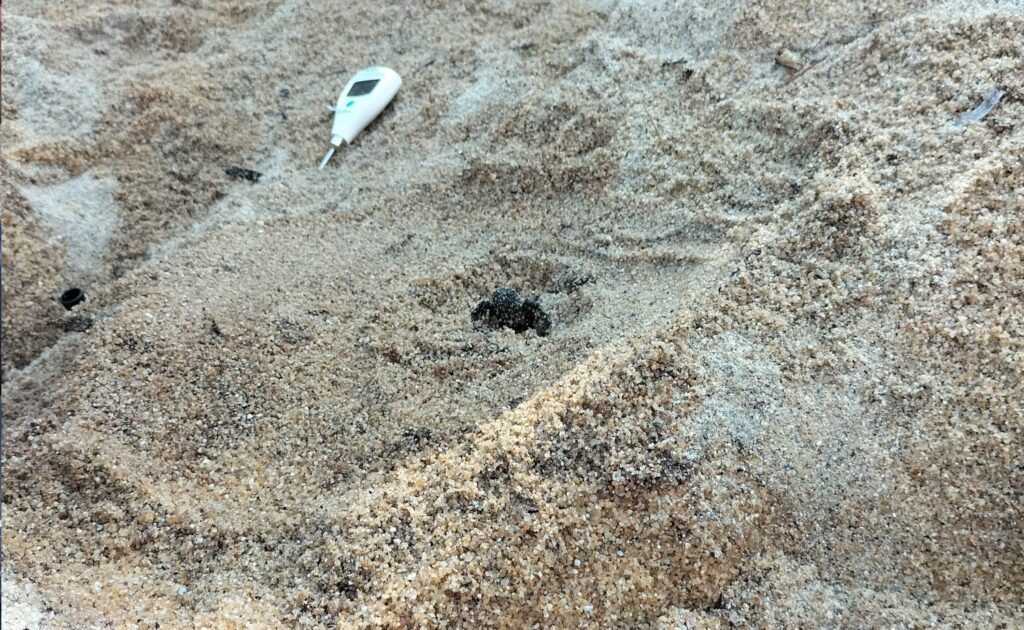 Il primo problema era quello di trovare il nido e, cosa non scontata, i ricercatori ci sono riusciti, scoprendo che mamma tartaruga marina a aveva depositato 80 uova, 40 delle quali non sviluppate e che nel nido c’erano ancora 22 tartarughine vive (2 delle quali non ce l’hanno fatta a sopravvivere), 8 erano “pipped”, cioè sviluppate ma già morte all’interno dell’uovo. Delle tartarughine trovate vive 16 a hanno raggiunto il mare con le proprie forze, mente 4 erano in condizioni critiche e non è stato possibile salvarle.