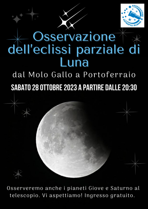 In occasione dell'eclissi parziale di Luna di sabato 28 ottobre, effettueremo una speciale osservazione astronomica dal centro di Portoferraio.