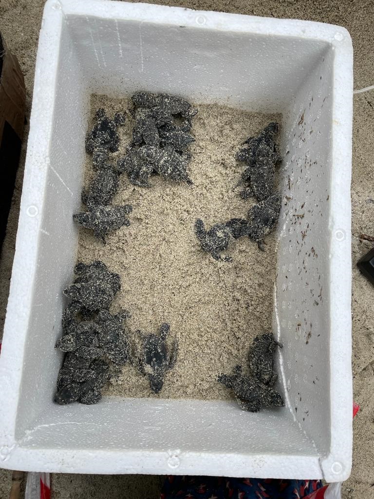 Dalla sabbia di Fetovaia sono stati raccolti 77 gusci di uova schiuse e 47 uova non schiuse per un totale appunto di 124 uova deposte. Nel nido erano presenti diversi piccoli ancora vivi che hanno poi raggiunto autonomamente il mare e, purtroppo, alcuni morti. Il successo di schiusa è stato basso rispetto a quello altissimo delle precedenti nidificazioni all’isola d’Elba.