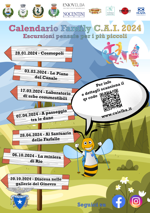 Le modalità per partecipare alle escursioni, le istruzioni sugli orari e gli altri dettagli saranno pubblicati di volta in volta e visibili tramite il QR–code inserito sulla locandina, o collegandosi al sito www.caielba.it.