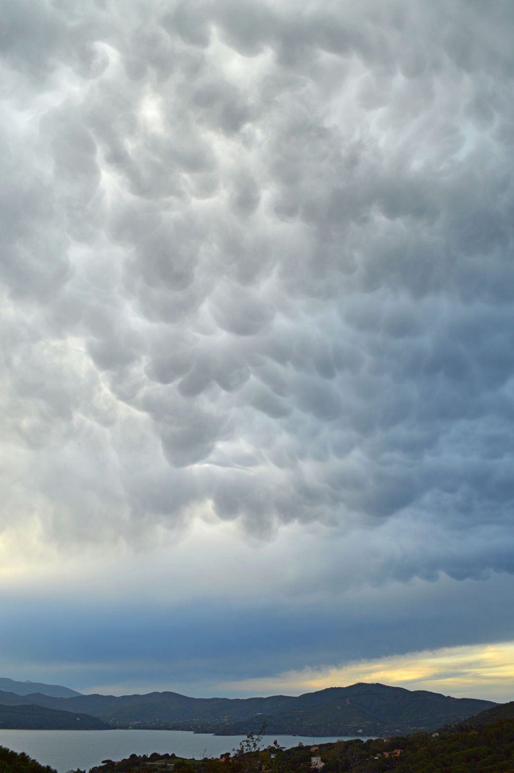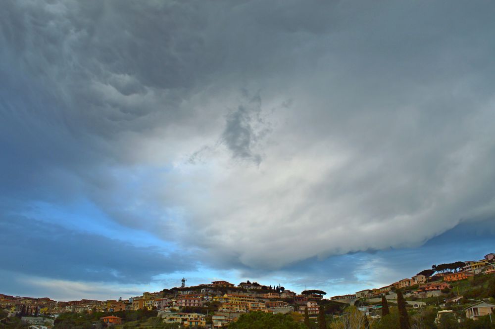 Nel tardo pomeriggio di Lunedì 25 Marzo una massa di queste strane (e un po' inquietanti) nuvole è transitata nei cieli dell'Isola d'Elba, disperdendosi poi verso nord e sud della costa toscana.