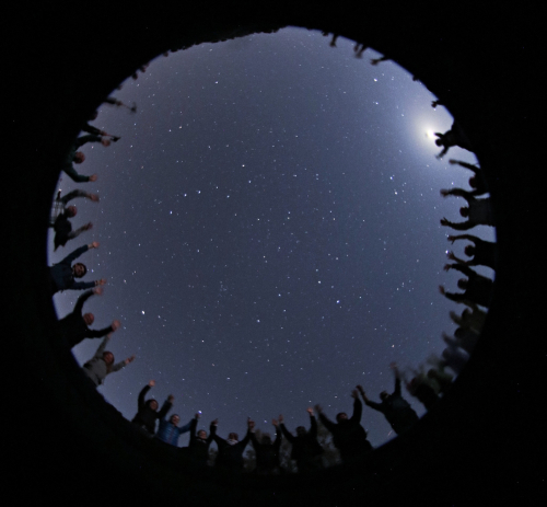 Nella foto, i partecipanti e, in cielo, la costellazione del leone.
