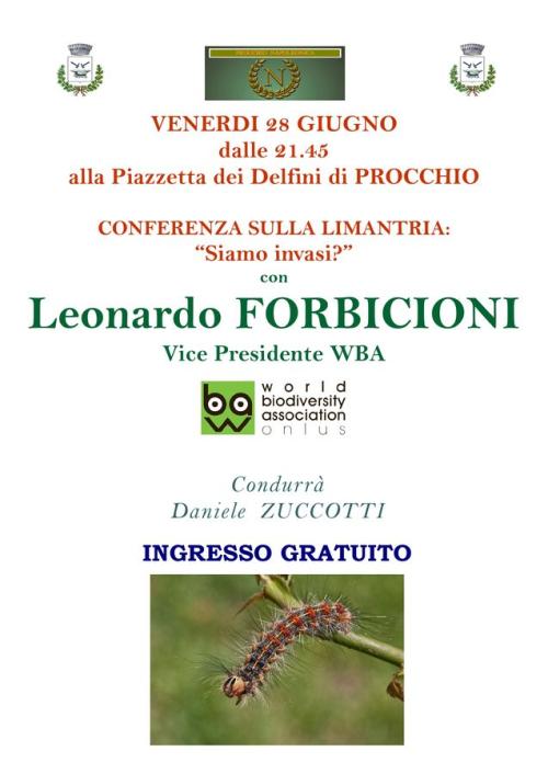 Sarà Leonardo Forbicioni, famoso entomologo, vice presidente del WBA, a trattare della Limantria, un vorace insetto che da anni spoglia (provvisoriamente) i lecci di alcune aree boscate dell'Elba.