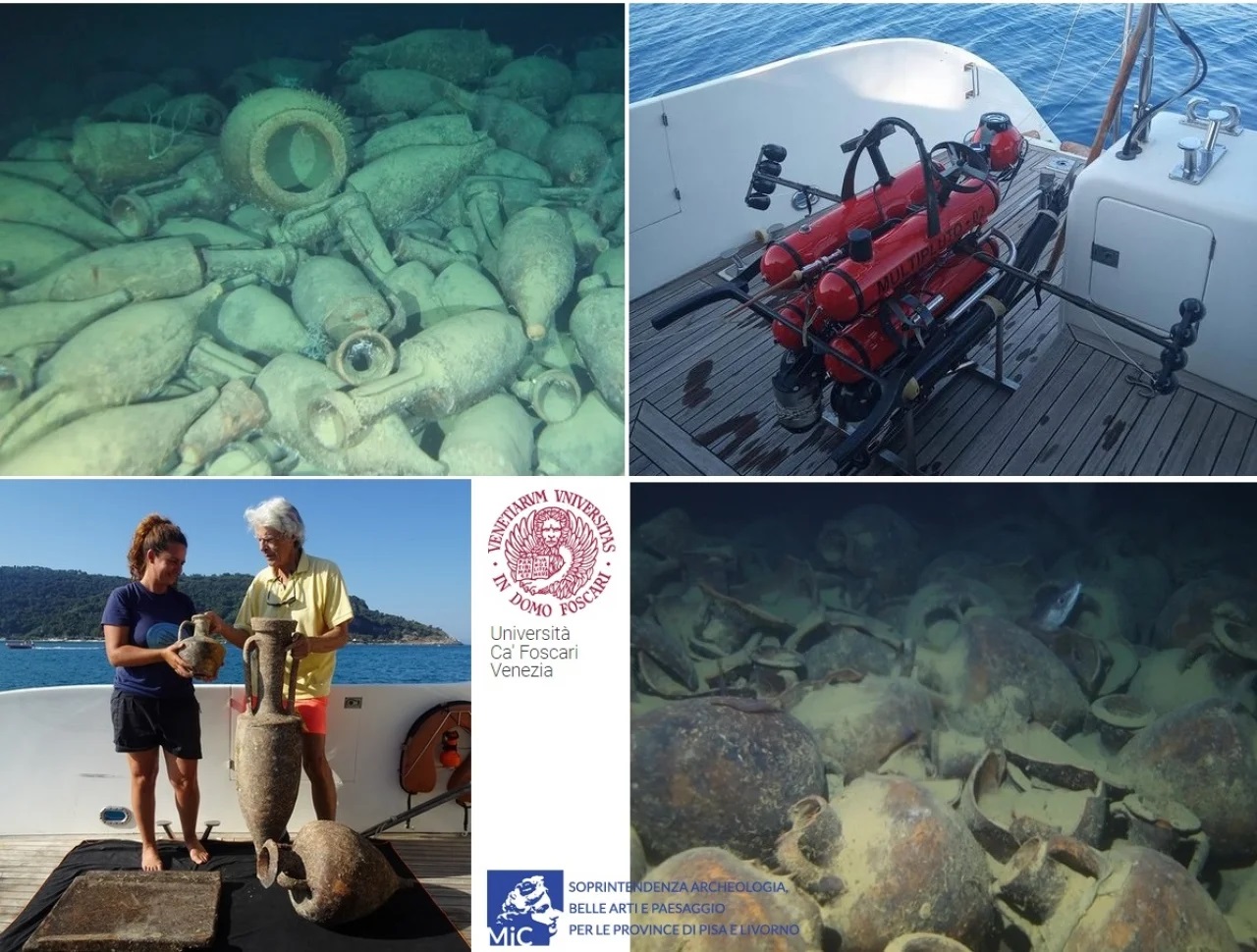 A fine luglio, il Dipartimento di studi umanistici (DSU) dell’Università Ca’ Foscari Venezia ha portato a termine una nuova breve campagna di indagini su relitti di età romana affondati negli alti fondali del Mar Tirreno. Il progetto è condotto da Carlo Beltrame ed Elisa Costa della Ca’ Foscari, in collaborazione con Fondazione Azionemare, Guido Gay, e sotto la sorveglianza della Soprintendenza Nazionale per il Patrimonio Subacqueo e di Lorella Alderighi della Soprintendenza archeologia, belle arti e paesaggio per le province di Pisa e Livorno e quest’anno le tecnologie avanzate della Fondazione e le competenze scientifiche del DSU hanno permesso di documentare e studiare ben tre relitti profondi di età antica, individuati in precedenza da Azionemare.