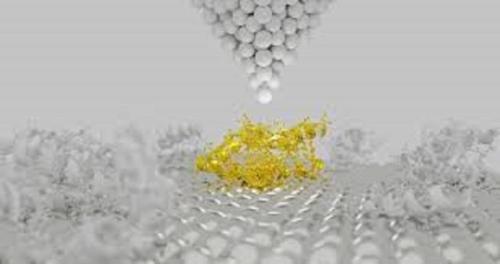 Mentre nel microscopio ottico l’elemento fondamentale è la luce, in quello AFM è una micro levetta a punta che idealmente termina con un singolo atomo (l’ultimo pallino dall’alto dell’immagine di copertina) e che viene portata a contatto con l’oggetto da osservare proprio come la puntina dei giradischi per i dischi in vinile. Questa levetta è chiamata ‘cantilever’ ed ha una certa elasticità, grazie alla quale quando giunge in contatto con il campione si piega senza spezzarsi, ovvero ‘deflette’: