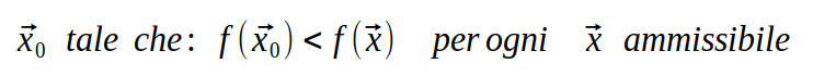 Ebbene le tecniche di ottimizzazione permettono di trovare l’insieme ottimo di soluzioni che minimizzano la funzione di costo. Dal punto di vista matematico si deve trovare quel vettore di variabili:
