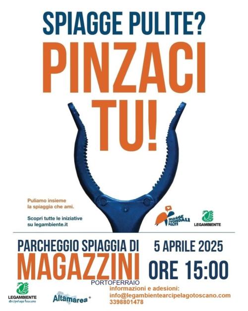 Anche l’Elba sarà protagonista e tutte e tutti sono invitate/i a partecipare all’evento organizzato da Legambiente Arcipelago Toscano e Cooperativa Altamarea il 5 aprile alle ore 15:00 alla spiaggia di Magazzini a Portoferraio (ritrovo al parcheggio). Per informazioni e adesioni: Questo indirizzo email è protetto dagli spambots. È necessario abilitare JavaScript per vederlo. -