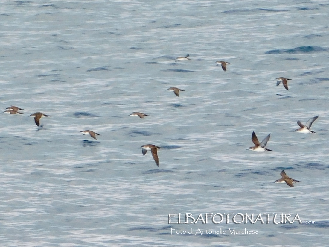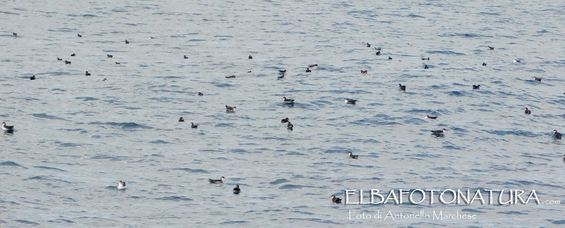 Una concentrazione simile di questi uccelli era già stata documentata dai miei obiettivi il 25 aprile 2021, quando dal traghetto da Portoferraio per Piombino, poco al largo di Nisportino avevo fotografato moltissime berte minori che si erano alzate in volo davanti alla prua della nave “rigando” la superficie del mare con il loro singolare decollo durante il quale sembrano camminare sull'acqua per prendere la rincorsa e sollevarsi.