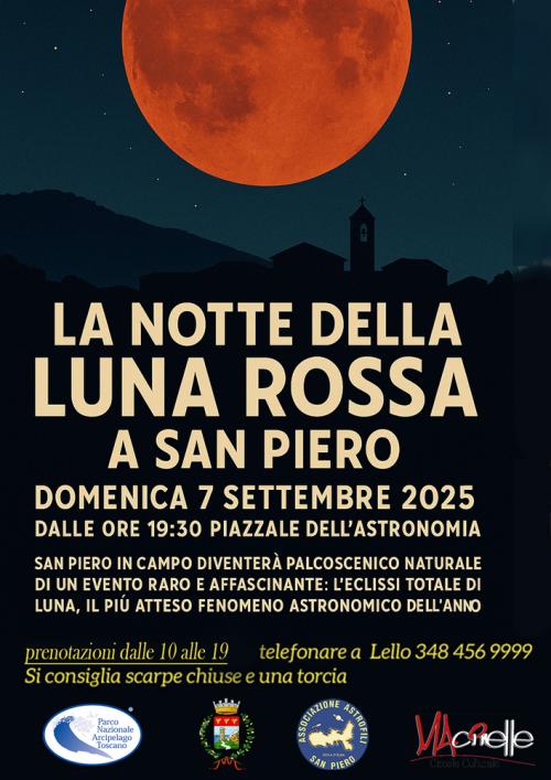 La sera di domenica 7 settembre 2025, San Piero in Campo diventerà palcoscenico naturale di un evento spettacolare e affascinante: l’Eclissi totale di Luna, il più atteso fenomeno astronomico dell’anno.