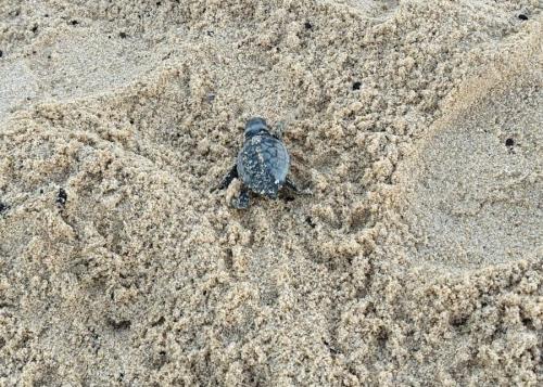 Alcuni esemplari sono usciti alla spicciolata anche dopo l’alba e sono stati avvistati e fotografati da un turista e da una volontaria di Legambiente, ma queste tartarughine si sono avventurate purtroppo su una spiaggia trafficata da ruspe piccole e grandi e fortemente disturbate. Fortunatamente era rimasta la telecamera per controllare e qualcuno ha comunque avvertito della nascita, ma si teme che qualche piccola sia rimasta sotto i cingoli, magari dopo essere ritornata sulla spiaggia attratta dalla luce artificiale o prima dell’entrata in mare.