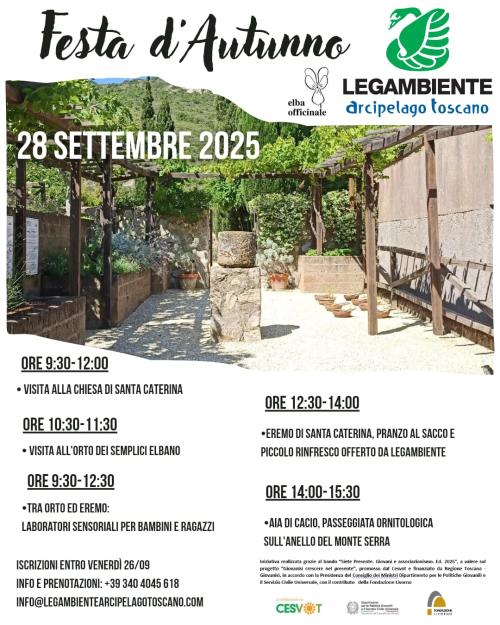 Legambiente Arcipelago Toscano vi invita alla Festa d’Autunno, organizzata in collaborazione con l’associazione Elba Officinale, che si terrà domenica 28 settembre a partire dalle ore 9.30 a Rio, e nel vicino Orto Botanico.
