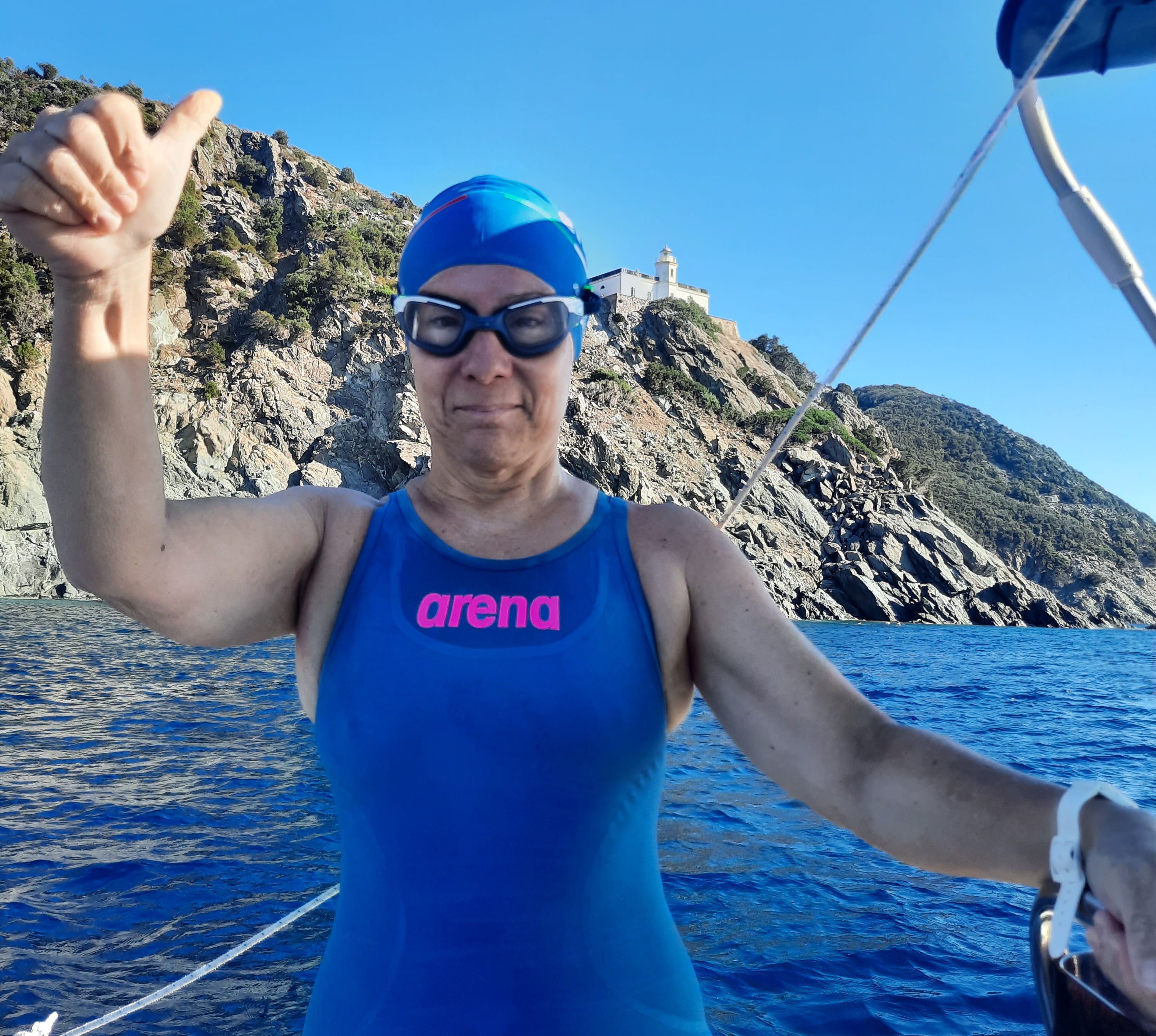 Silvia, nuotatrice di gran fondo in mare aperto, nella giornata di domenica 10 luglio ha nuotato per 22 km nelle acque dell'Elba.