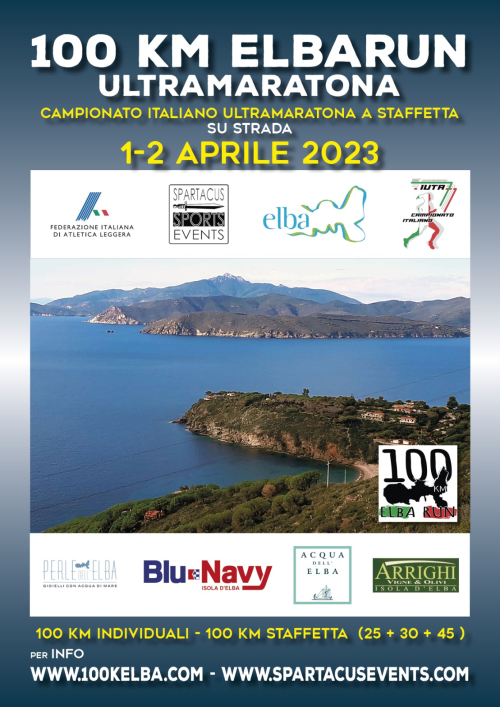 Ritorna dopo ben 40 anni la 100 KM DELL'ELBA,evento podistico su strada con doppia formula di partecipazione INDIVIDUALE e STAFFETTA in programma per i giorni 1 e 2 Aprile 2023 ed inserito nei prestigiosi Calendari Nazionali FIDAL e IUTA,i tracciati di gara percorreranno l'intero periplo stradale dell'Isola escluso l'anello della Parata.