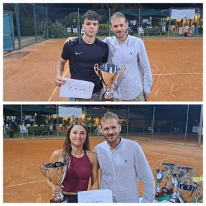 In foto i vincitori dei singolari: Guarducci Federico e Miliani Valeria, premiati da Alessandro D'Errico di TCE, sponsor del torneo