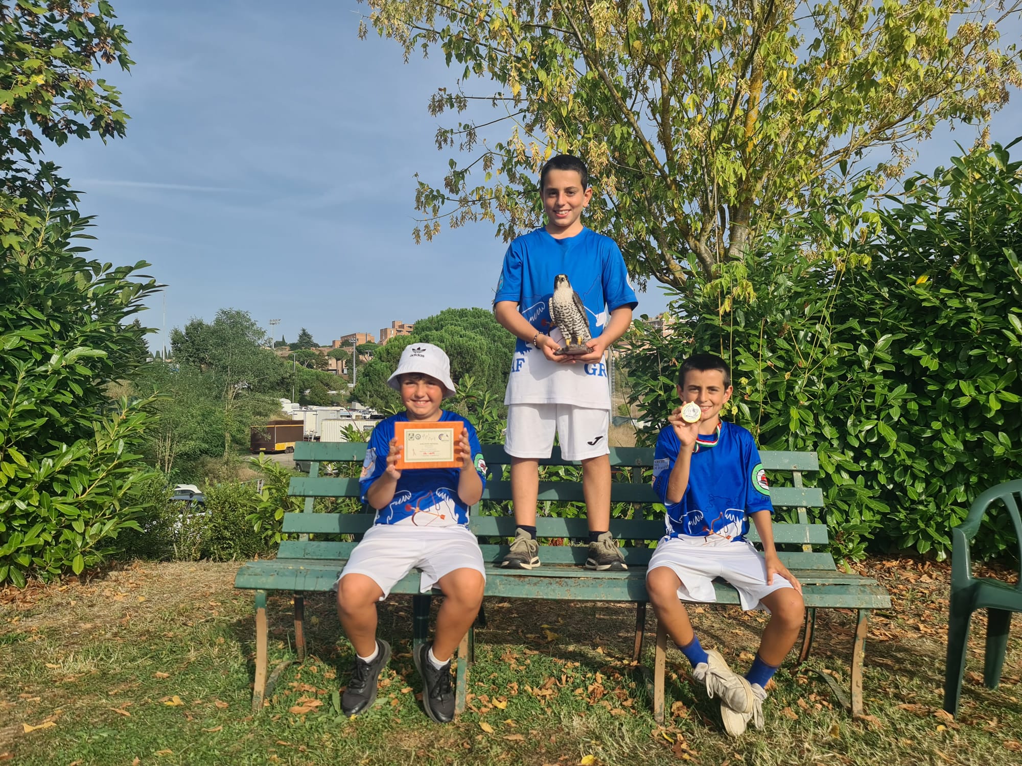 Aggiungo che a Siena fanno le cose in grande e premiano anche la Compagnia più numerosa, per me il premio più significativo che una compagnia può consegnare e i ragazzi ne sono orgogliosi; da notare infatti che mi hanno mandato subito la foto come fosse per loro il premio più grande, che così si va ad aggiungere ai tanti altri ricevuti nelle gare con molti atleti e consegnano 7 premi, tra medaglie e ricordi, come il piatto senese ed i numerosi salami aggiunti alle medaglie, facendoci portare all Elba un bel bottino.