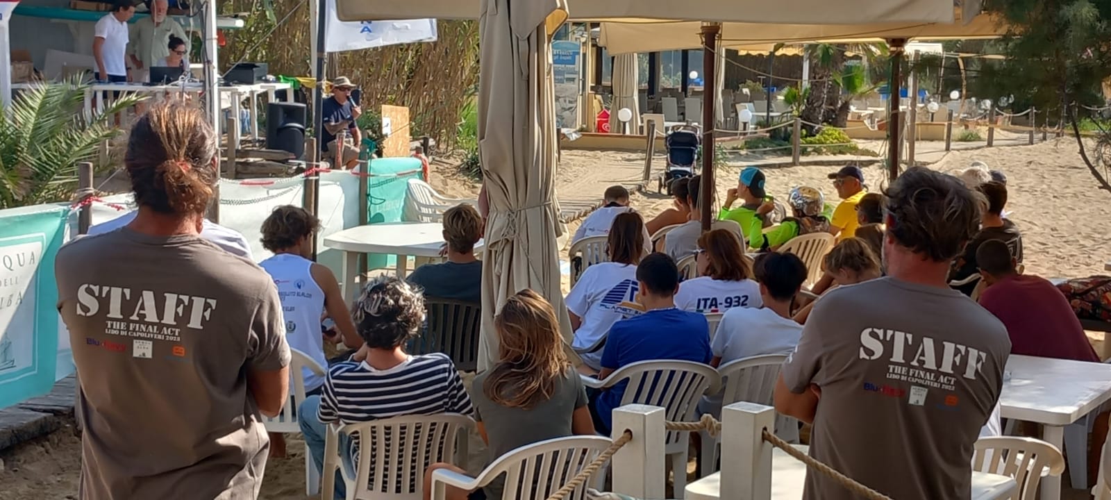 Si è conclusa la prima giornata di gare dell’atto finale del Campionato Italiano Slalom Assoluto e Giovanile Fin & Foil 2023 FIV/AICW, nello scenario splendido del Lido di Capoliveri, ospiti del Wind & Snack, Lido di Capoliveri, e con la partecipazione del Circolo Velico Naregno.