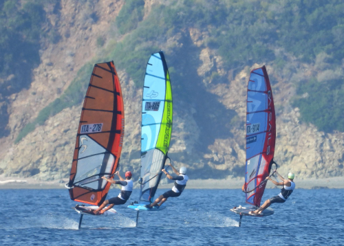 È stato il foil a dare spettacolo in quest’ultima giornata, il vento, in questo caso sufficiente, ha fatto sì che venissero disputate sette prove per ogni categoria, assoluto, under 20 e under 15-17.