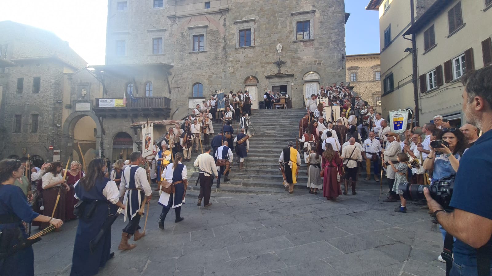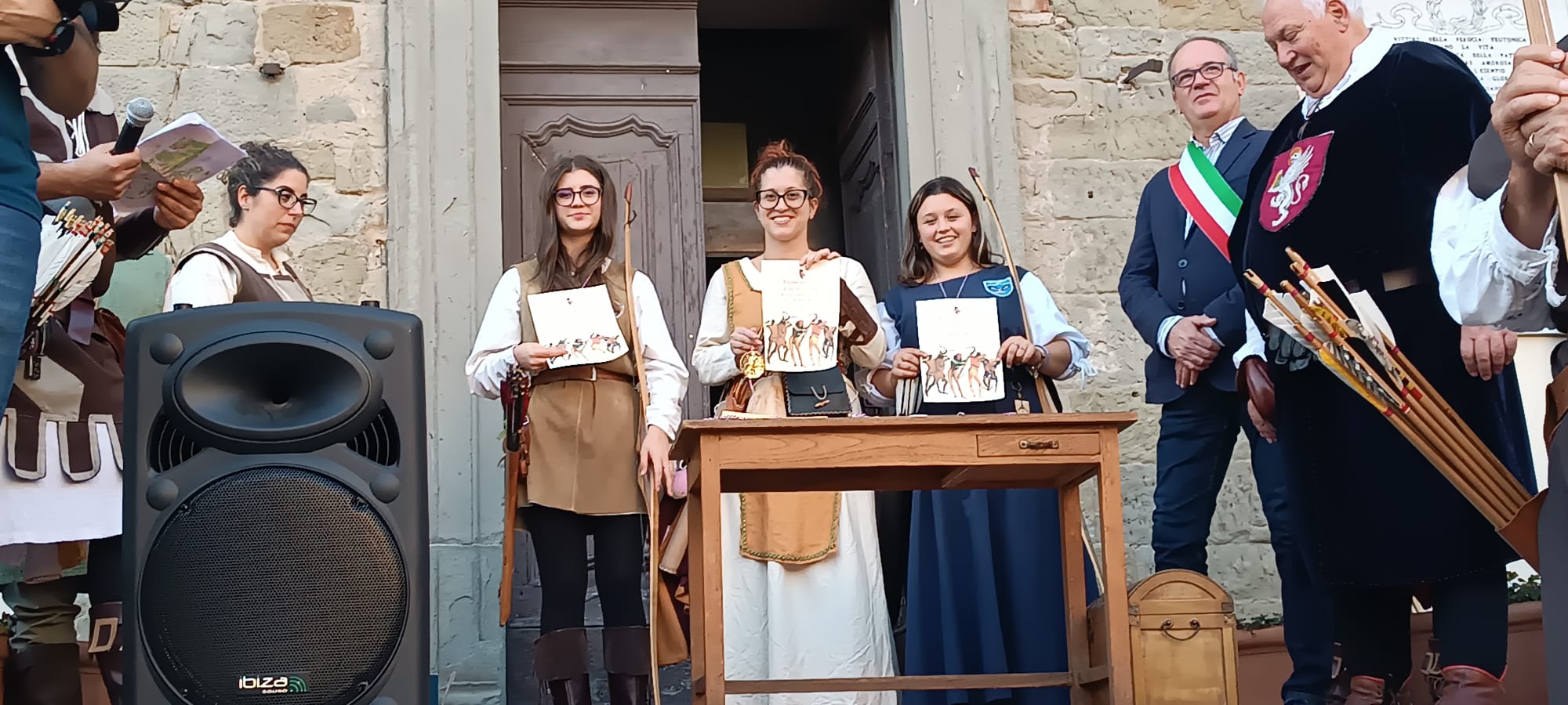 Tutte le piazze e tutti i vicoli erano pieni di visitatori, che si godevano il sole e fotografavano i nostri costumi medievali e i bersagli che erano situati anche dentro i musei, con lo stupore di noi concorrenti che abbiamo apprezzato moltissimo questa iniziativa.