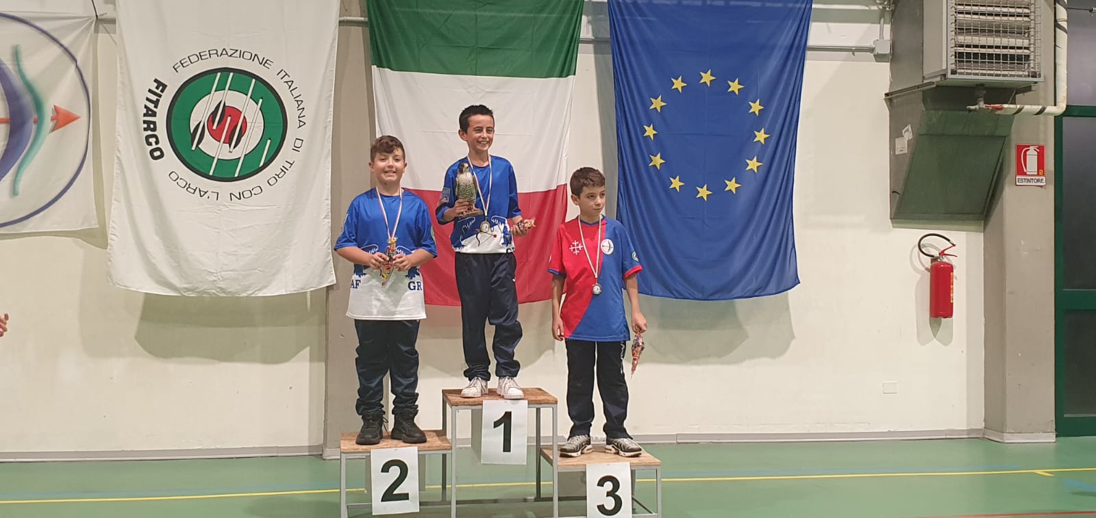 Divisione Olimpica classe giovanissimi: 1° class Filippo Peria, 2° class Lorenzo Palella ed il 3° dell'Asd Frecce Pisane.